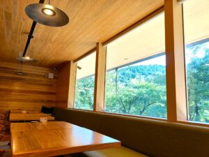 扉を開けると、まず鼻をくすぐるのは焼きたてパンの香ばしい匂い!入り口付近にはバラエティ豊かなパンが並んでおり、これだけで食欲がそそられます。スタッフの方に案内された席へ向かうと、大きな窓の外には見渡す限りの緑。 「普段、こんなに贅沢な景色を見ながら朝食を食べたことがあったかな…」 そんな感慨にふけってしまうほど、開放感にあふれた素敵な空間でした。