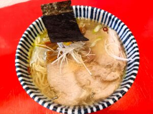 ★★★★☆(星4) 「塩中華そばをいただきました。麺がモチモチで、トッピングのバランスも最高。次は隣の人が食べていた『まぜそば』に挑戦したい!」