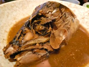 「ビンタ」とは鹿児島弁で「頭」のこと。運ばれてきた一皿を見て絶句……。デカい。とにかくデカいんです! 皿の上に鎮座するカツオの頭は、まるでアートのような迫力。 恐る恐る箸を入れると、中には身がぎっしり。甘辛い味付けが骨の髄まで染み込んでいて、一口食べるごとにカツオの力強い旨味が爆発します。