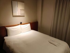 いざお部屋へ!扉を開けてびっくり! なんと広々空間に、ダブルサイズのベッドがどーん!二人で泊まっても荷物を広げても余裕の広さで、本当に快適に過ごせました😭✨