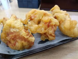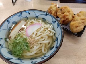 「とり天うどん」は、とり天のサイズにびっくり!一つひとつがとっても大きくて、見ているだけで食べ応えがありそうです。衣はサクッと、中はジューシーで食感も抜群とのこと。これはうどんのサイドメニューというより、主役級の存在感でした!